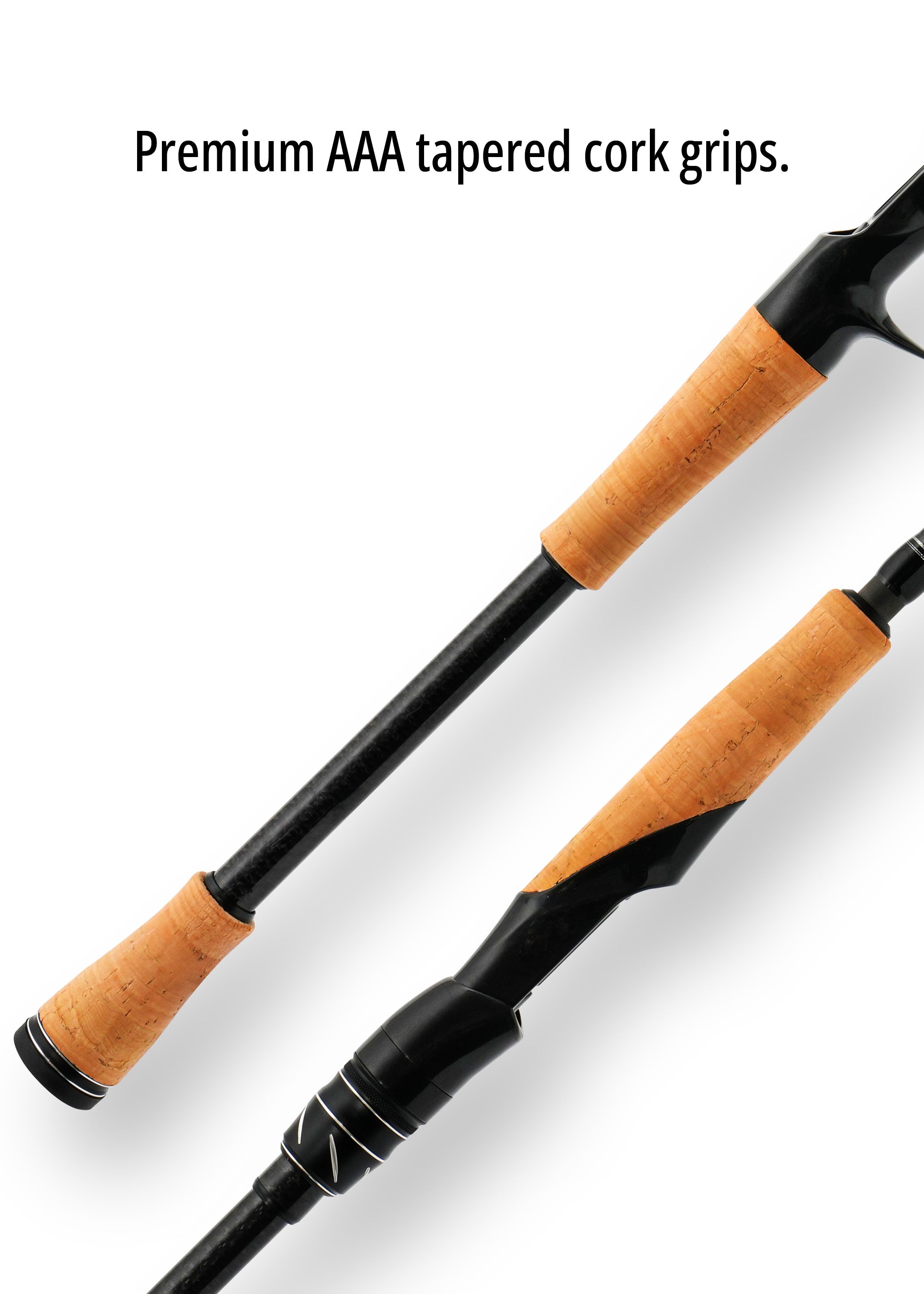 Tactile tapered cork grips provide sensitivity when it matters and power when you need it.