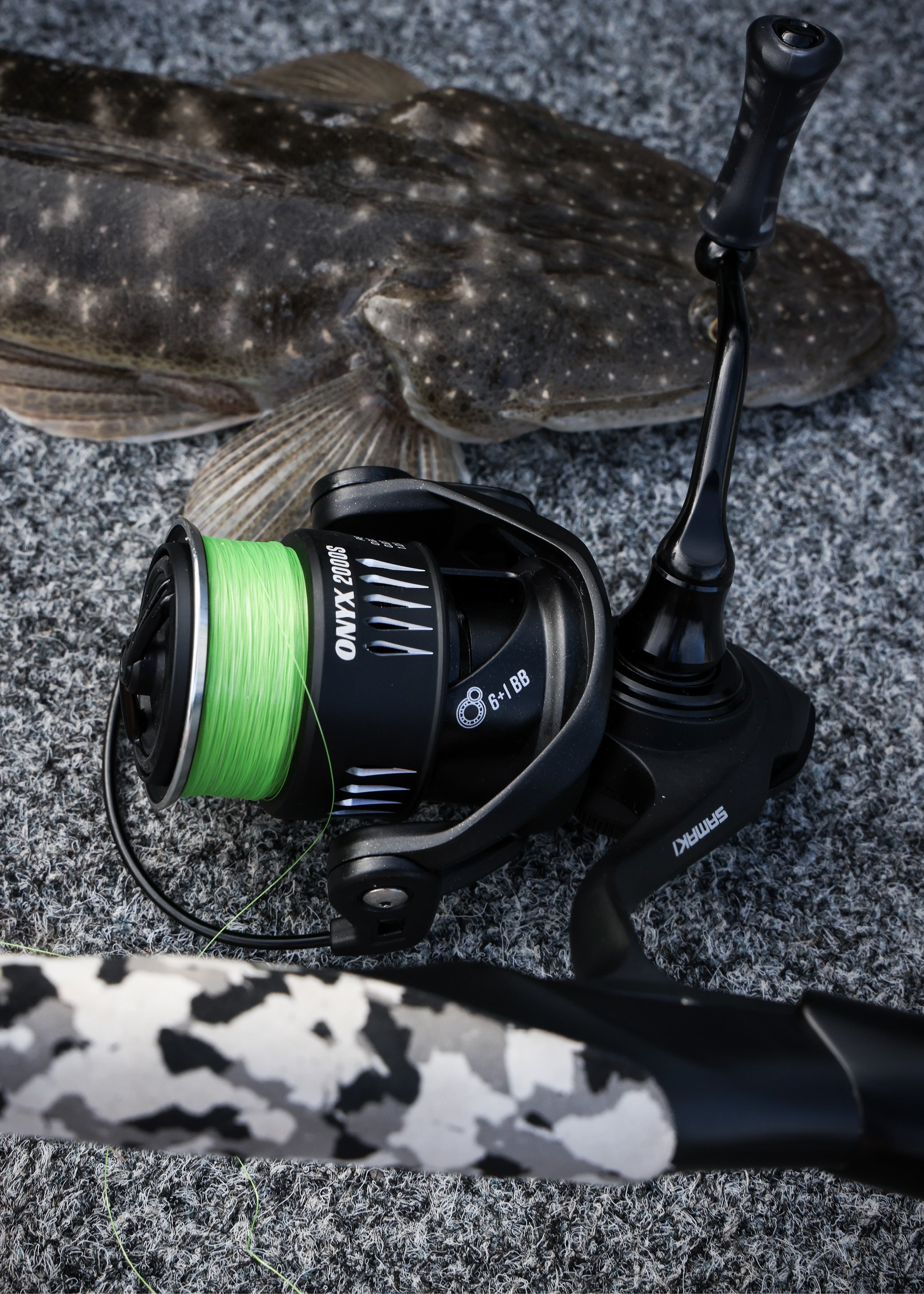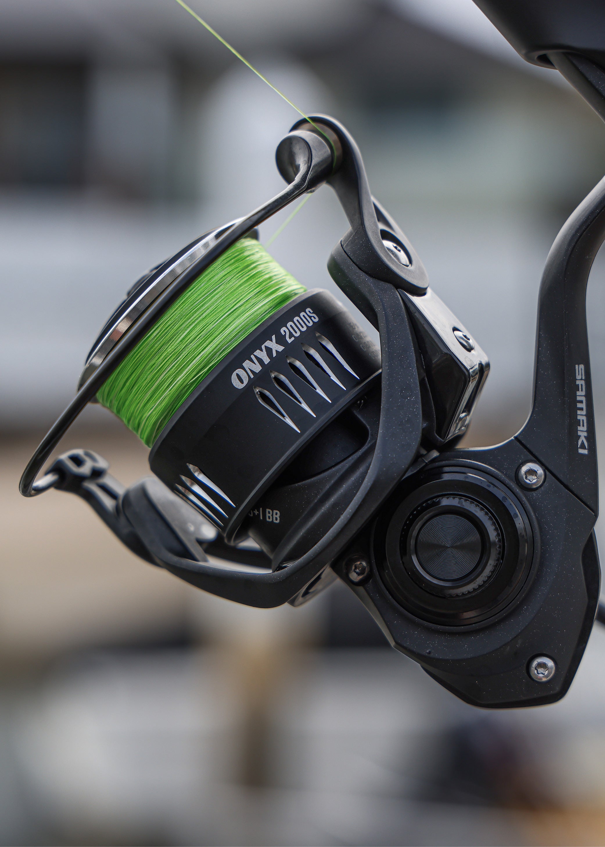 Purpose-built for finesse applications, the Onyx Spin delivers featherweight performance without sacrificing strength with a reinforced carbon material that is lightweight and strong - CarbonCore. Its CarbonCore body and rotor keep things light, rigid, and perfectly balanced, while FusionGear ensures smooth, efficient cranking cast after cast. Inside the shallow spool a sealed carbon drag provides consistent, reliable stopping power, giving light-line specialists total confidence when the pressure’s on.