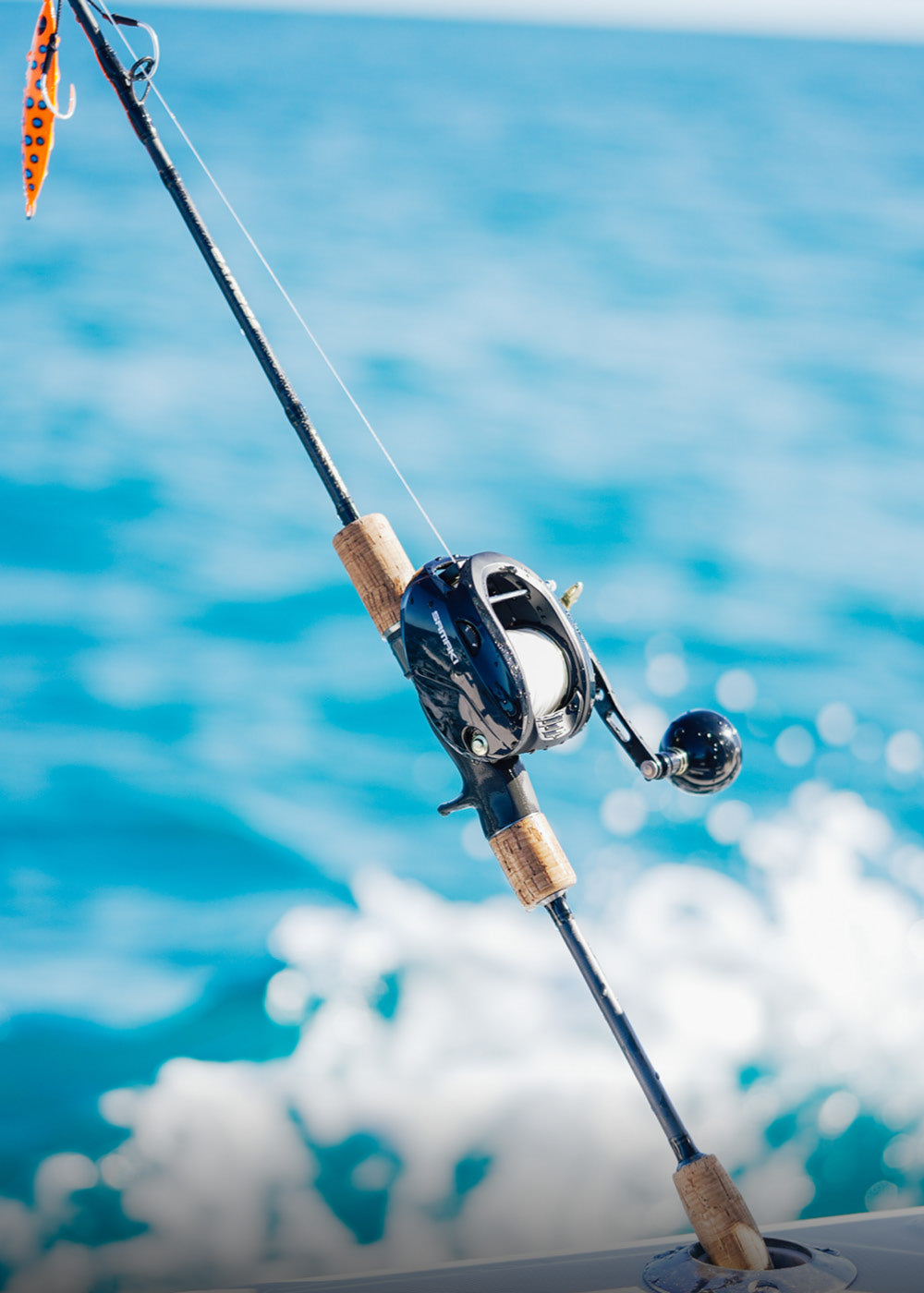 - Split grip handle design – rod holder compatible