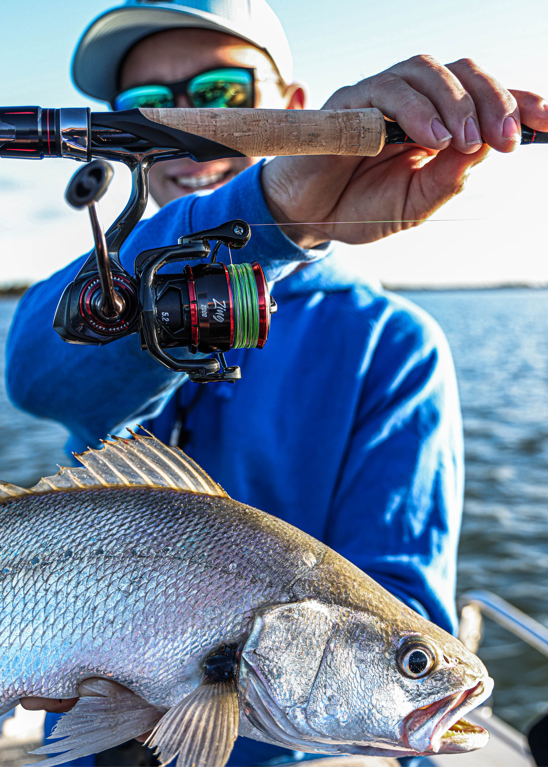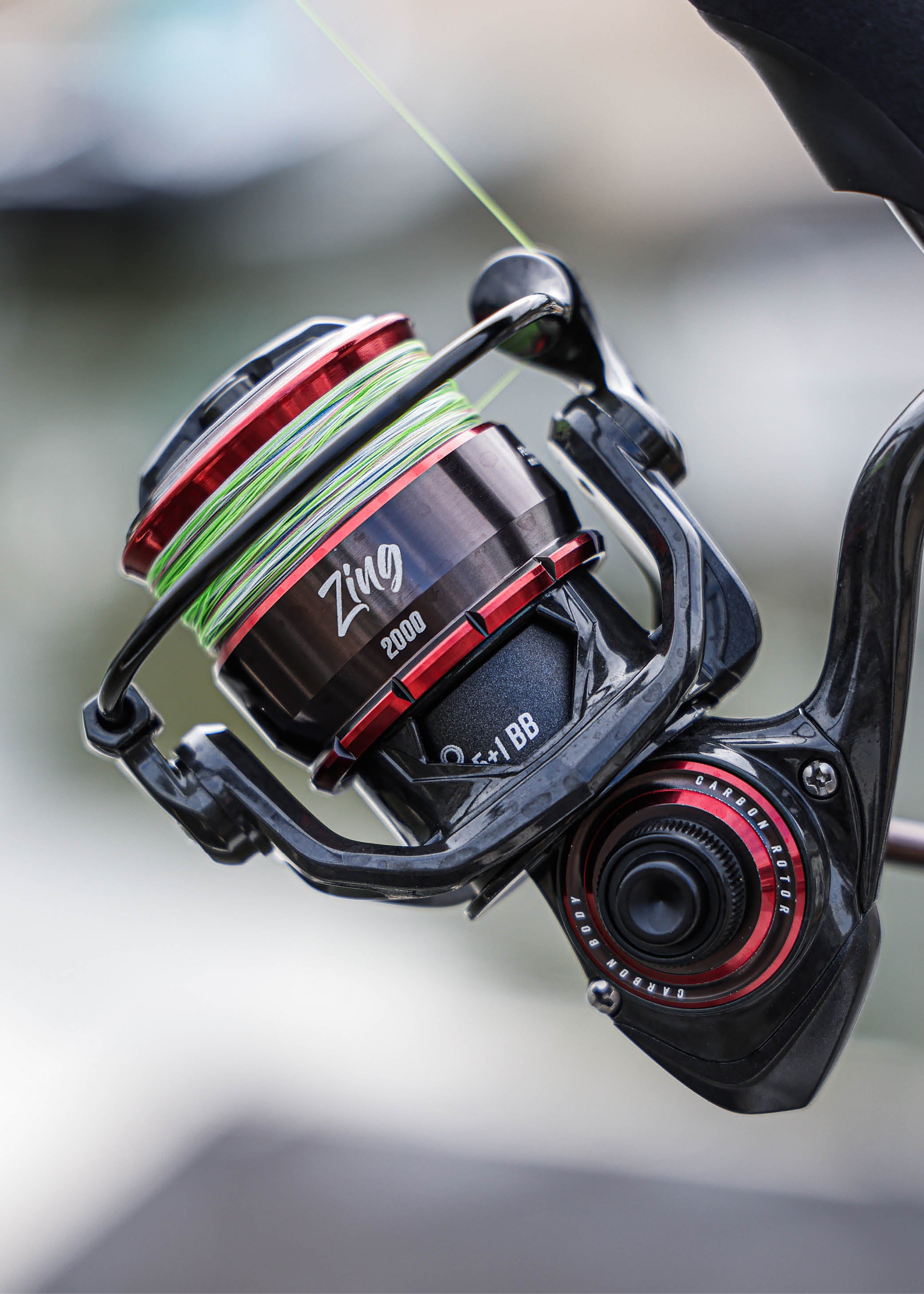 Developed for anglers who need strength without the weight, the Zing Spin delivers cutting-edge performance with a reinforced carbon material that is lightweight and strong - CarbonCore. The CarbonCore body and rotor keep it light and balanced in the hand while maintaining rigidity under load, keeping the internal machine cut gearing aligned. A sealed carbon drag system ensures consistent stopping power, while CNC-machined FusionGear+ stainless steel drivetrain delivers CNC machined precision, smoothness, and durability.